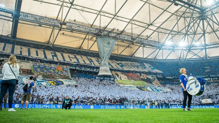 On Saturday, during the club's last home match of the season, a 1-1 draw with Hamburg, Schalke ultras unfurled seven banners across all four stands of the Veltins Arena, including a 3D replica of the trophy which had the word "mafia" in place of UEFA.