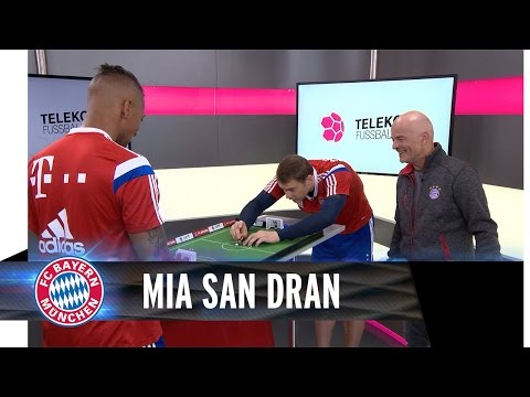 Manuel Neuer und Jerome Boateng duellieren sich in der neuen Ausgabe von 'Mia san dran' im Tipp-Kick. Das und vieles mehr von unseren beiden Weltmeistern seht ihr auf www.telekomfussball.de.